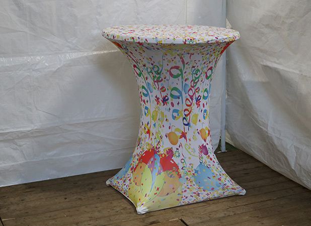Tafelrokken geven statafels en buffettafels een verzorgde en aangeklede uitstraling. Wij bieden de tafelrokken in verschillende kleuren, prints en afmetingen.